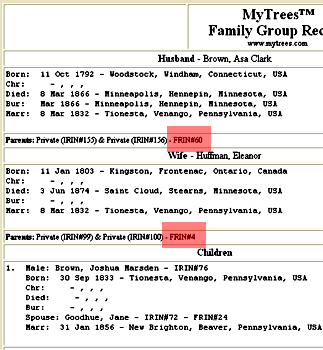 number next to Asa's father’s name is Asa’s parents’ FRIN. This illustrates