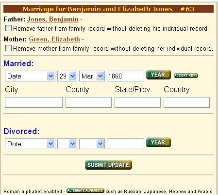 identification numbers also appear in the marriage screen in MyTrees Online.