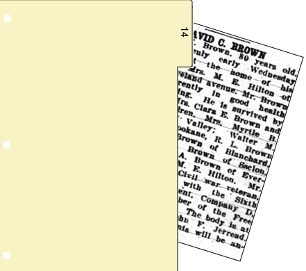 Let's look at a simple example. Say you have an obituary for David Brown, whose MRIN is 14. Where should the obituary be filed in your notebook? If you said behind tab #14, you're correct!